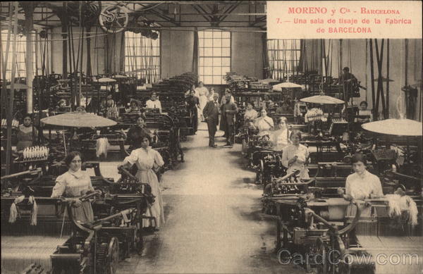 Front: 7.- MORENO y Cia - BARCELONA Una sala de tisaje de la Fabrica de BARCELONA TE Back: Barcelona prohibida) L. Roisin, fotógrafo, (Reproducción CORRESPONDENCIA ARCISO SEVILLANO VALENCIA 21 MAY 1920 DIRECCION 10 *******