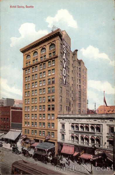 Front: Hotel Savoy, Seattle WORM 在王正版 出版社 明明 Barriz 1|11 Sol SADEN CERR Back: Made by Chilton Printing Co., Phila., Pa., U. S. A. This space may be used for writing D ST THIS HALF FOR ADDRESS HERE