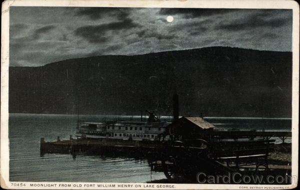 70454 MOONLIGHT FROM OLD FORT WILLIAM HENRY ON LAKE GEORGE.