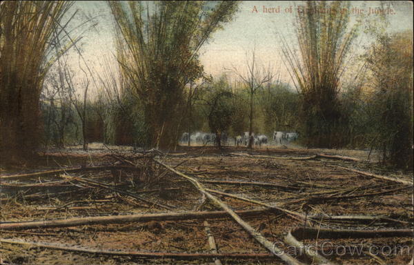 Front: A herd of the Jungle. Back: Publishers: Wiele & Klein, Madras. This space may be used for printed or written matter. 3 pies ABROAD 1 anna