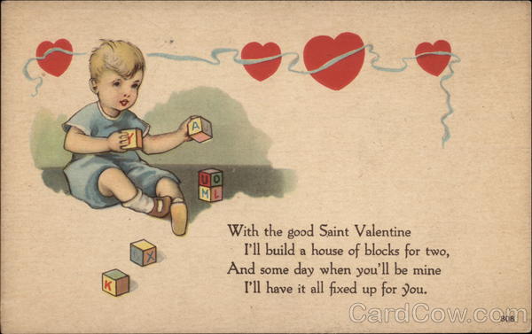 Front: :9 mm AN UO MIL With the good Saint Valentine I'll build a house of blocks for two, And some day when you'll be mine I'll have it all fixed up for you. 808 Back: лит SOL
