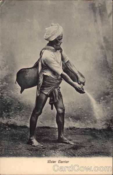 Front: Water Carrier Back: ANNA DEHLI G. Montill. Avr. Santa Cruz. 18th Pacific i Douglas U.S. A. California. FE INDIA REVENUE A little glimpse of native life. We have had a very fine trip through India. Love from both to all. Aunt Printed in Saxony