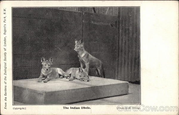 Front: From the Gardens of the Zoological Society of London, Regent's Park, N.W. 83 Copyright. The Indian Dhole. [Fhoto. by H. Irving. Back: CARD. d. 1d.