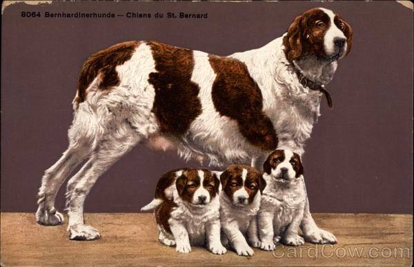 St. Bernard with 3 Puppies
