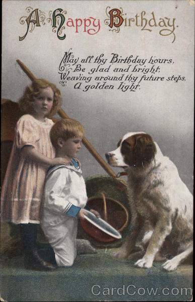 Front: A Happy Birthday. May all thy Birthday hours, Be glad and bright, Weaving around thy future steps, a golden light Back: CORRESPONDENCE. M.B. Series. 239F Card. HERE.