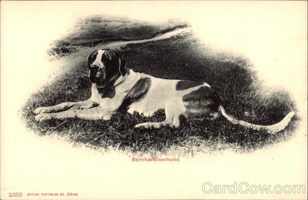 Front: 2355 EDITION PHOTOGLOB CO. ZÜRICH Bernhardinerhund Back: Côté réservé à l'adresse. Carte postale. Union postale universelle. Weltpostverein. - Unione postale universale. Nur für die Adresse. Lato riservato all indirizzo.