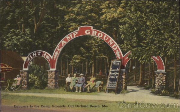 Front: GROUND 3** B73 2-30x7 20 28 Entrance to the Camp Grounds, Old Orchard Beach. Me. CAMP Back: MADE IN U. S. A *TICHNOR QUALITY VIEWS" REG. U.S. PAT, OFF. MADE ONLY BY TICHNOR BROS. INC., BOSTON, MASS. 70120 LA