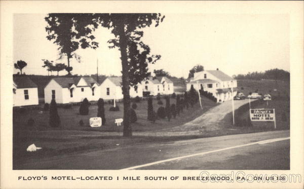 Front: FLOYD'S MOTEL-LOCATED I MILE SOUTH OF BREEZEWOOD . PA. ON US 126 Back: Zaman NATIONAL PRESS, INC., NORTH CHICAGO Portland 22 Feb 1988