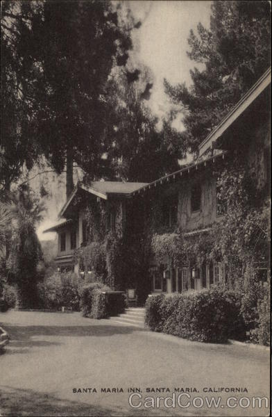 Front: SANTA MARIA INN, SANTA MARIA, CALIFORNIA Back: ARTVUE ay SANTA MARIA INN SANTA MARIA, CALIFORNIA ON THE MISSION TRAIL "IT IS ALWAYS BLOSSOM TIME AT THE SANTA MARIA INN' Rech 2 august 1989