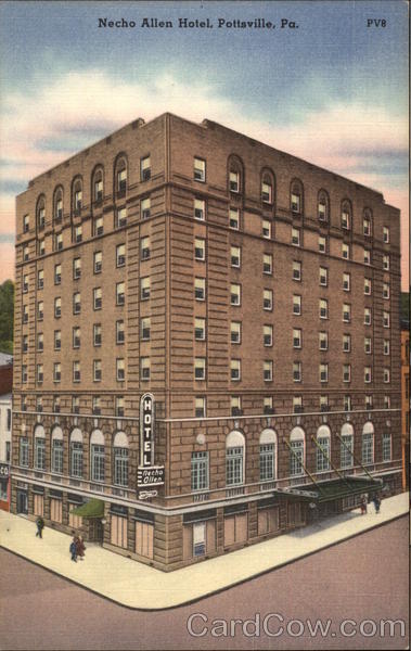 Front: Necho Allen Hotel, Pottsville, Pa. PV8 FEL CO Necho Qllen COTEL Back: THE MEBANE GREETING CARD CO., WILKES-BARRE, PA. 79593