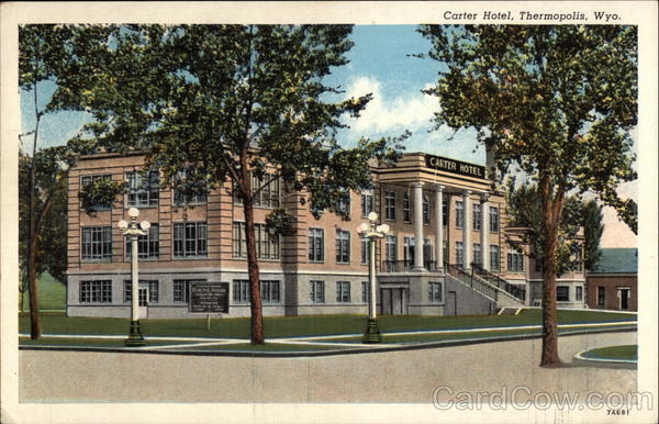 Front: Carter Hotel, Thermopolis, Wyo. CARTER HOTEL DINING ROO 7A681 Back: so so 2= LINDSTAD STUDIO, THERMOPOLIS, WYO. “C. T. AMERICAN ART” REG.U.S. PAT. OFF. UT
