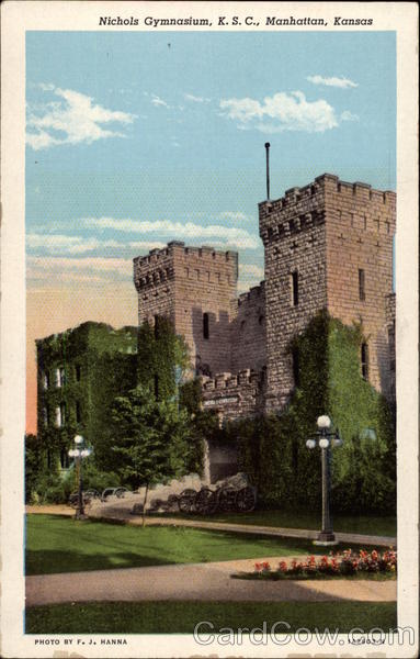Front: Nichols Gymnasium, K. S. C., Manhattan, Kansas PHOTO BY F. J. HANNA 1A 2603-N Back: DISTRIBUTED BY WOLF STUDIO, MANHATTAN, KANSAS