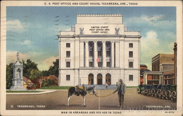 MAN IN ARKANSAS AND HIS ASS IN TEXAS