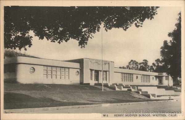 Front: ** 11 W-5 HENRY HOOVER SCHOOL, WHITTIER, CALIF. Back: Douglass Caulkins, Publisher, Pomona, Calif.