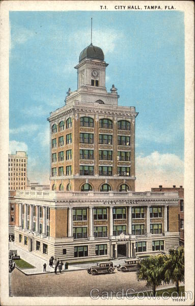 Front: AAA 00/000/ 300/1000/ bon 300 000 000 T.1. CITY HALL, TAMPA, FLA. MO GCO ODBI city HALL Gr 110393 Back: PUBLISHED BY ASHEVILLE POST CARD CO., ASHEVILLE, N. C. FLORIDA плита C, T. AMERICAN ART COLORED To CHI AGO -6 HERE
