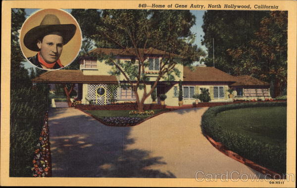 Front: 849-Home of Gene Autry, North Hollywood, California OB-H511 Back: WESTERN PUBLISHING & NOVELTY CO., LOS ANGELES, CALIF. "C.T.ART-COLORTONE REG. U.S. PAT. OFF. PLACE