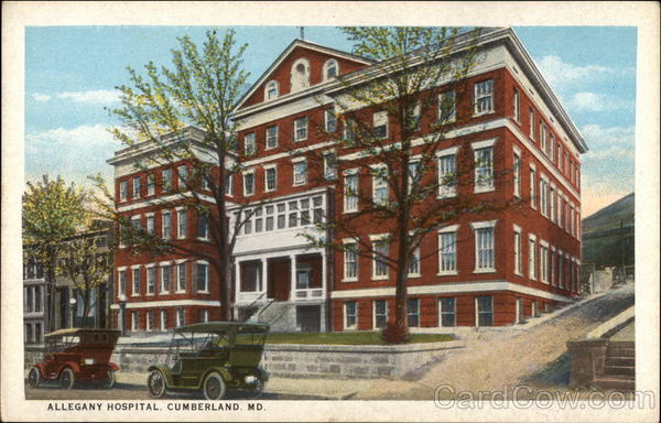 Front: 00 TH LL 178 81 ALLEGANY HOSPITAL, CUMBERLAND. MD. I Back: MADE IN USA PUBLISHED BY THE NEFF NOVELTY CO., CUMBERLAND, MD. R-41550 AND ISLAND POSSESSIONS, CUBA, CANADA AND MEXICO FOR FOREIGN