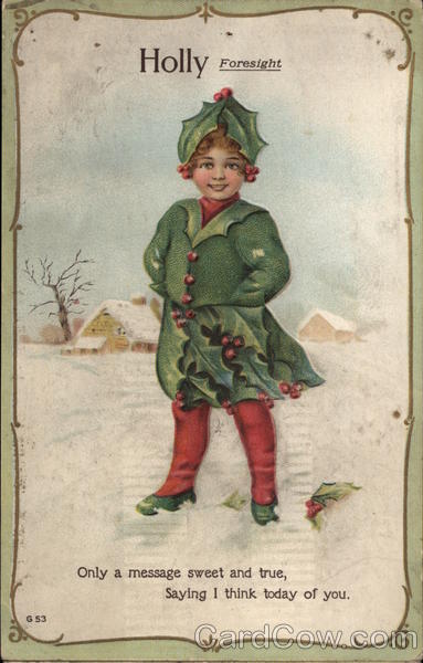 Front: G 53 Holly Foresight Only a message sweet and true, Saying I think today of you. Back: HENDER to Velm ONN