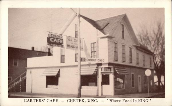 Front: Carters Fresh COF CAFE DELICIOU MEALS SS PARKING AIR CONDITIONED CARTERS' CAFE - CHETEK, WISC. "Where Food Is KING" Back: NATIONAL PRESS, INC., NORTH CHICAGO Dey Glima me to mach 1988