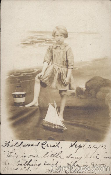 Front: Stildwood Creal. Sepelile/7. 201 This is our little dang kitain. Star her bathing suit. She is five years old. Mrs. Calhome. ده Back: SERIEN 1907 UNITED STATES OF 1706 FRANKLIN 190 1907 Mrs. J. H. Jessup. секир Liddle Rock, Arh. 6. !!