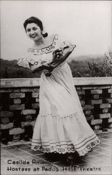 Front: 90 NOT Casilda Amador Hostess at Padua Hills Theatre 1060 Back: -Kodak - Paper-- ANGELENO PHOTO SERVICE - 1030 SO. ALVARADO, L. A. 6, CALIF.-2 PHOTO POST CARD