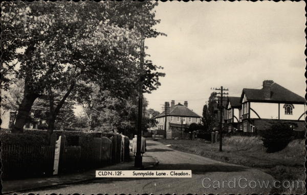 Front: CLDN.12F. Sunnyside Lane. Cleadon. Back: POST CARD, FRITH'S SERIES REIGATE This is the Lane where ture was our bungalow is. This picture though: before it was built, taken COPYRIGHT