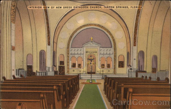 Front: INTERIOR VIEW OF NEW GREEK ORTHOD'OX CHURCH, TARPON SPRINGS, FLORIDA ADPEA KA ANTON Back: E-6766 Published by Hartman Card Co. Pinellas Park, Florida