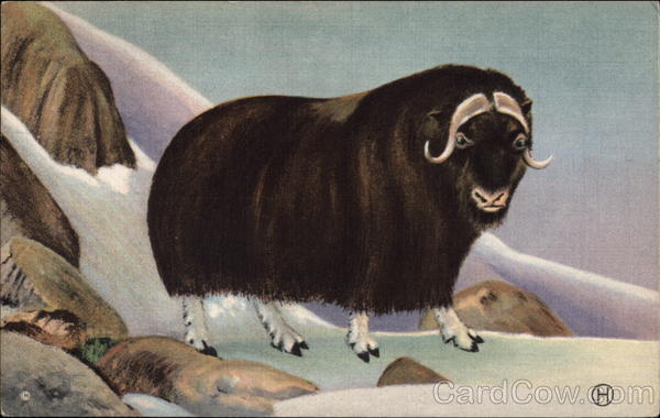 200 : 2A.H738 C PPP AMERICAN WILD LIFE OF THE NORTHWEST AND ALASKA MUSK-OX "C. T. ART.COLORTONE, COPYRIGHT BY OSCAR HODL, JUNEAU, ALASKA MADE ONLY BY CURT TEICH & co., INC., CHICAGO, U.S.A.