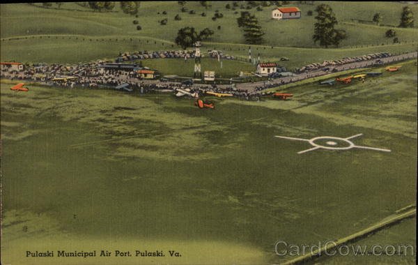 Front: Pulaski Municipal Air Port. Pulaski. Va. Photo by David C. Kont Back: MADE IN U. S. A *TICHNOR QUALITY VIEWS" REG. U.S. PAT. OFF. MADE ONLY BY TICHNOR BROS., INC., BOSTON, MASS. 2/2 Htt 72225