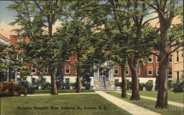 Front: Twomey Hospital. West Calhoun St. Sumter S. OC. Back: POST CARE FLORENCE NEWS CO.. FLORENCE. S. C. 78320