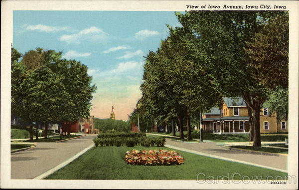 Front: View of Iowa Avenue, Iowa City, Iowa 93243-N Back: DISTRIBUTED BY VOSS NEWS CO., IOWA CITY, IOWA سر June 2 Stayed here 29 48. مہ