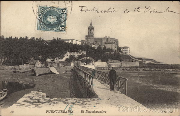 Front: IO 5 GENT 5 Fortacobie & 12 Décenten le ND. Fot. FUENTERRABIA.- El Desembarcadero Back: Tarjeja Postal Kehärmat Correspondencia affecturers somen's do Jennife مو 010 Direccion фмар Paus Bastionn detre Lathuile France