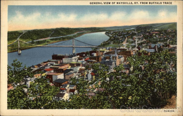 Front: GENERAL VIEW OF MAYSVILLE, KY. FROM BUFFALO TRACE 7A-H1374 Back: “C.T. ART-COLORTONE” REG.U.S.PAT. OFF. MADE ONLY BY CURT TEICH & CO., INC., CHICAGO