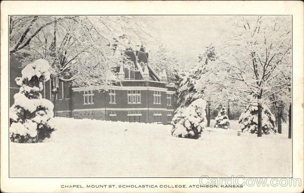 Front: 日日 CHAPEL, MOUNT ST. SCHOLASTICA COLLEGE, ATCHISON, KANSAS /!. 中 Back: 50 This space for name and address