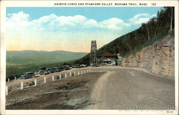 Front: HAIRPIN CURVE AND STAMFORD VALLEY, MOHAWK TRAIL, MASS. 135 Olo 90-30 Back: PUBLISHED BY WHITCOMB SUMMIT CO., INC., NORTH ADAMS, MASS. STAR QUALITY CH C. T. AMERICAN ART COLORED HERE