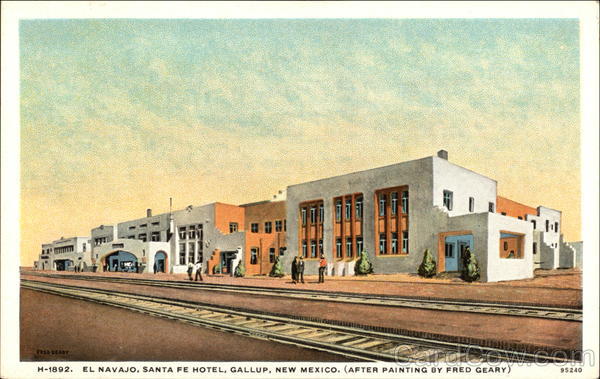 H-1892. EL NAVAJO, SANTA FE HOTEL, GALLUP, NEW MEXICO. (AFTER PAINTING BY FRED GEARY)