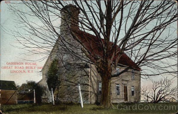 Front: 2075 GARRISON HOUSE, GREAT ROAD BUILT 1687 LINCOLN, R. I. Back: A. C. Bosselman & Co.. New York. One Cent for United States, and Island Possessions, Cuba, Canada and For Foreign.