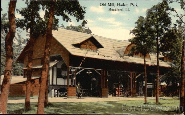 Front: Old Mill, Harlem Park, Rockford, Ill. Back: PUBLISHED BY WENDELL STATIONERY CO., ROCKFORD, ILL. From B, T., P., 9621 SHIEASO A-5805 000 THIS SPACE FOR ADDRESS ONLY