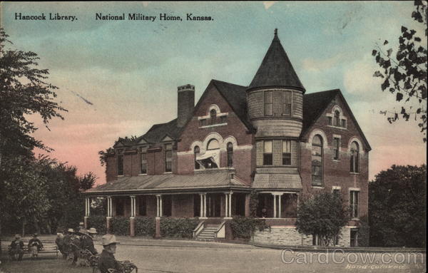 Front: Hancock Library. National Military Home, Kansas. Hand-colored.. Back: Post Cards of Quality. The Albertype Co., Brooklyn, N. Y. THIS SPACE FOR ADDRESS.