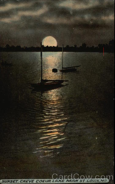 Front: SUNSET, CREVE COEUR LAKE NEAR ST. LOUIS, MO. Back: CHICK Pub. by The Acmegraph Co., Chicago Co Post Card STAMPHERE TWO CENTS
