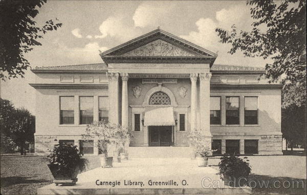 Front: CARNEGIE LIBRARY Carnegie Library, Greenville, O. 34 Back: THE ROTOGRAPH Co.N.Y. CITY 59590 kestrude sept. 8, 1910