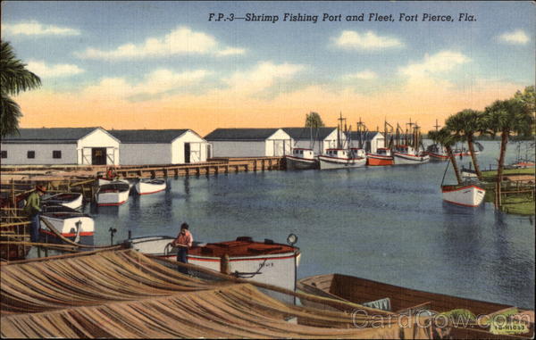 Front: F.P.-3-Shrimp Fishing Port and Fleet, Fort Pierce, Fla. 1 B-H1033 Back: FLORIDA CARD & NOVELTY CO., ORLANDO, FLA. Sue never seentho, 254 loce 1988 man