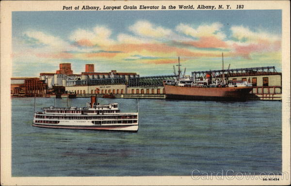 Front: Port of Albany, Largest Grain Elevator in the World, Albany, N. Y. 183 86881993388886 多 9A-H1454 Back: C. W. HUGHES & CO., INC., MECHANICVILLE, N. Y. tablnd a Ray R. There