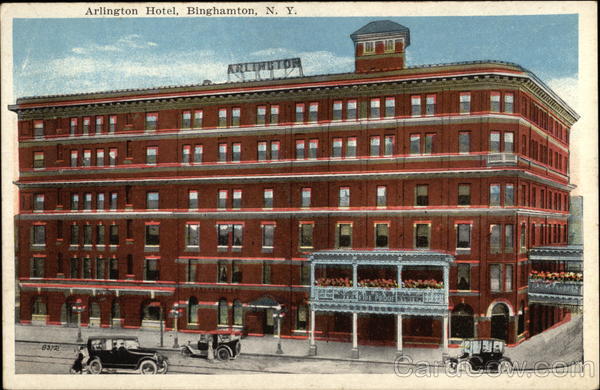 Front: 8372 Arlington Hotel, Binghamton, N. Y. AL ARLINGTON 000F A Back: Pub. By. A. M. Pierson, Binghamton, N. Y. 1.25 HERE.