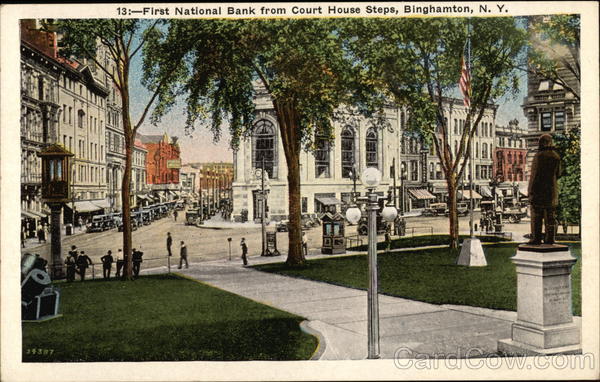13:-First National Bank from Court House Steps, Binghamton, N. Y.