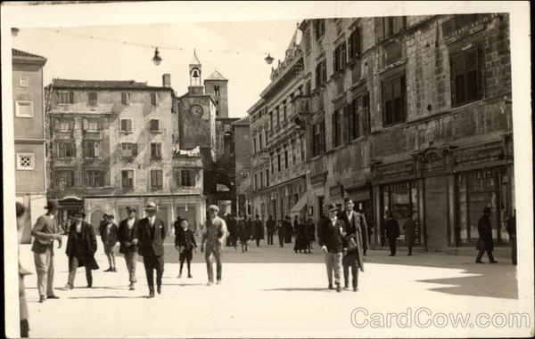 Front: MODERNE KROJAC VASTINE SULEGE CRMLEH PREDEN Back: SPLIT. Narodni trg Foto Franceschi, Om Adresse