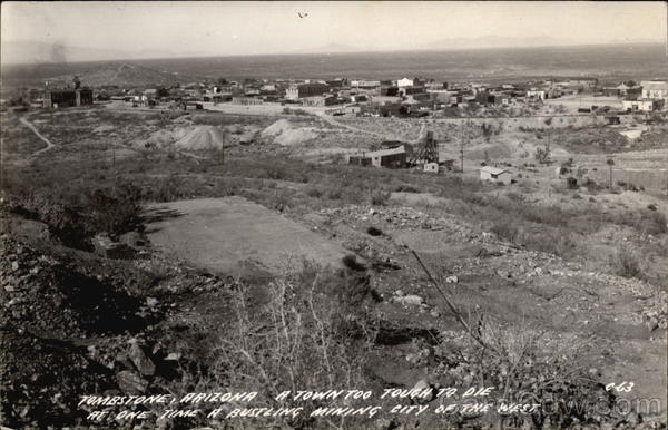 Front: TOMBSTONE ARIZONA A TOWN TOO TOUGH TO DIE HE ONE TIME A BUSTLING MINING CITY OF THE WA WES 6-63 Back: POST CARD EK ALL RIGHTS RESERVED-THE L. L. COOK CO., MILWAUKEE