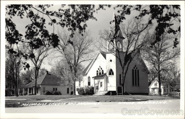 Front: METHODIST CHURCH AND PARSONAGE WAUSH, NEBRASKA. Back: 75 23. PORT CARD ALL RIGHTS RESERVED -THE L. L. COOK CO., MILWAUKEE
