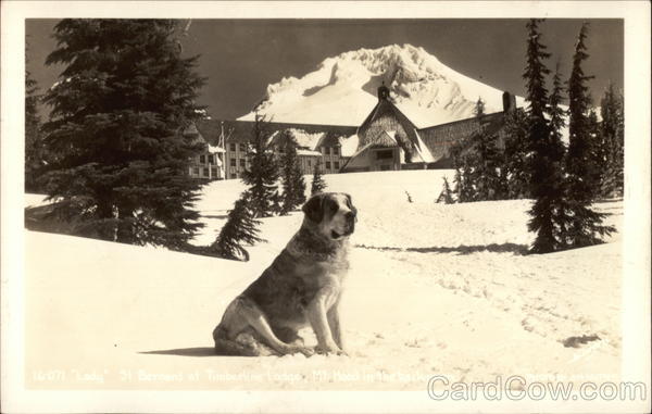 Front: 16-071 "Lady" St. Bernard at Timberline Lodge Mt Hood in the background PHOTO BY JIM NUTTER Back: لوگ pa PLACE 1 MERE 191