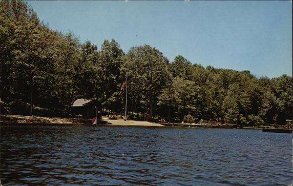 36897-B Water Front MASONIC CAMP Lake Kanawauke Bear Mountain, N. Y. Photo by L. F. Stockmeyer West Nyack, N. Y. Genuine Natural Color Made by DEXTER PRESS, Inc. HERE
